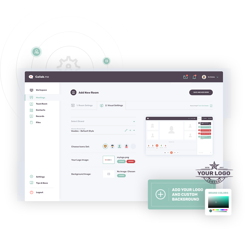 Es tu reunión de negocios. Me pertenece. Personalice todo, desde los colores de los botones hasta el logotipo. Clave su próxima presentación en línea