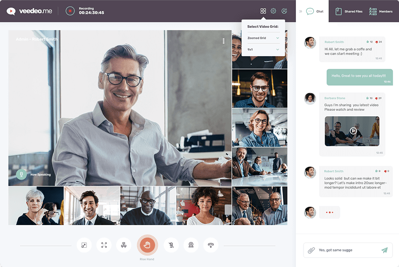 It’s your business meeting. Own it. Customise everything from the button colours to the logo. Nail your next online presentation